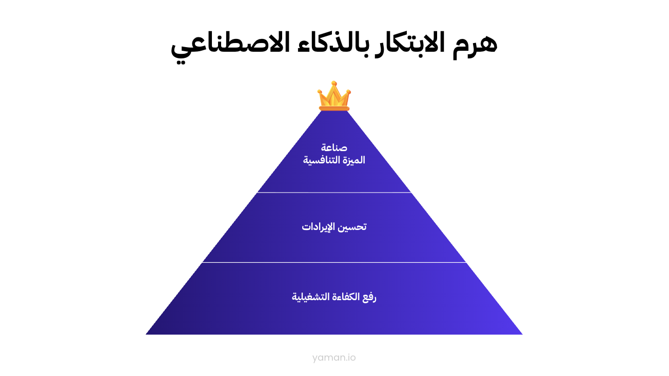 رحلة الابتكار والتحوّل للذكاء الاصطناعي تمر بثلاث مراحل تشكّل هرم القيمة: